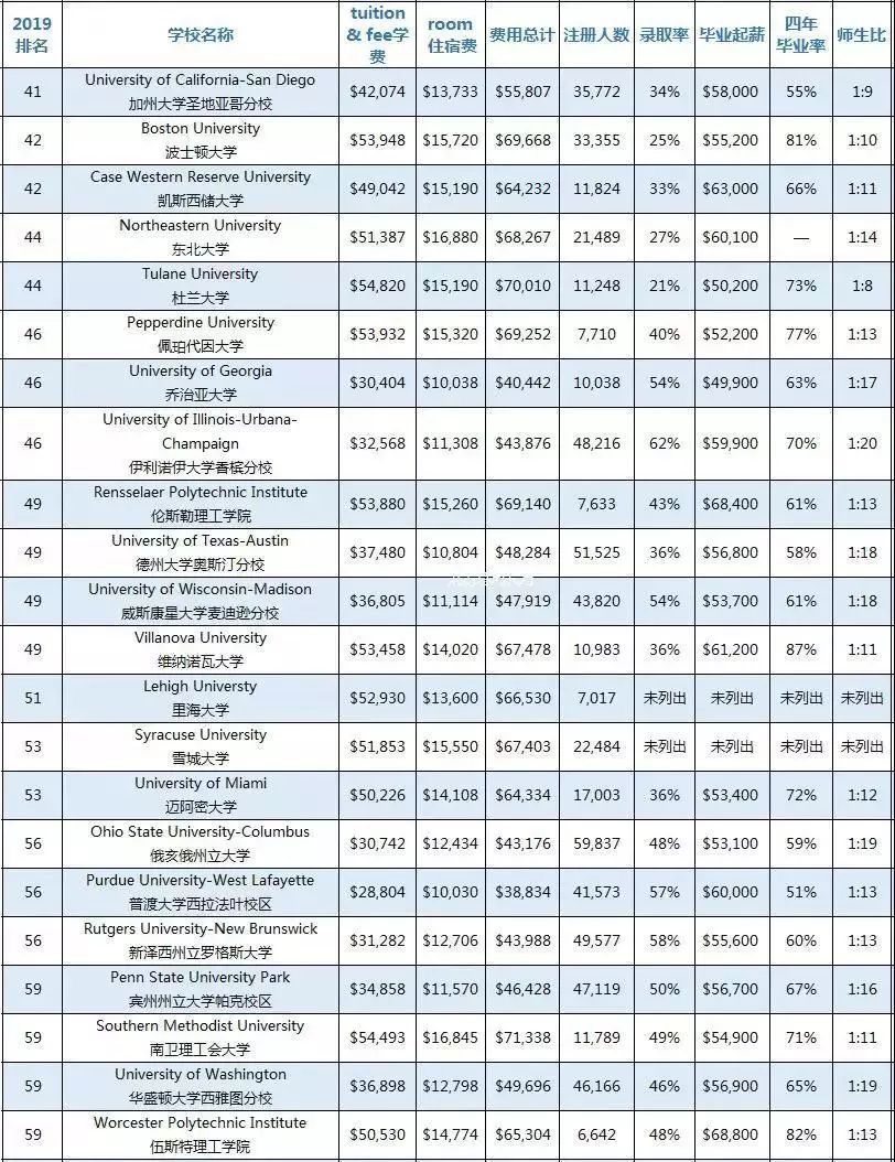 (排名前41-60综合大学招生信息,点击查看大图)